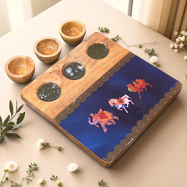 3 Bowl Wooden Snack Platter - Blue Royalty