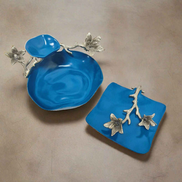 3 Bowl Wooden Snack Platter - Blue Royalty