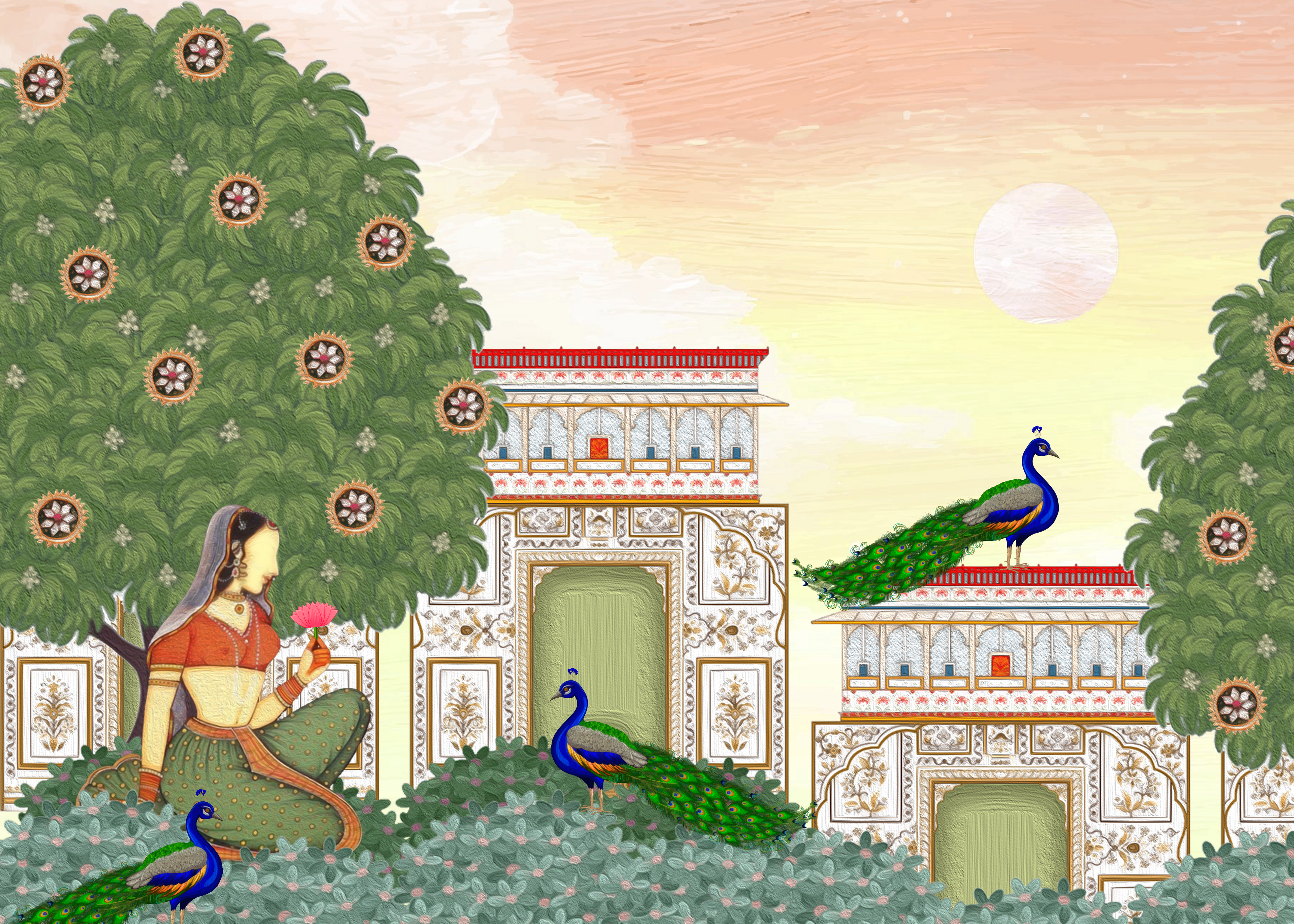 Rajputi women in regal attire, miniature forts echoing grandeur, and peacocks adding a touch of vibrancy - this collection is a celebration of Rajasthan's rich heritage.
