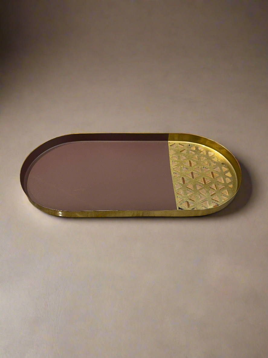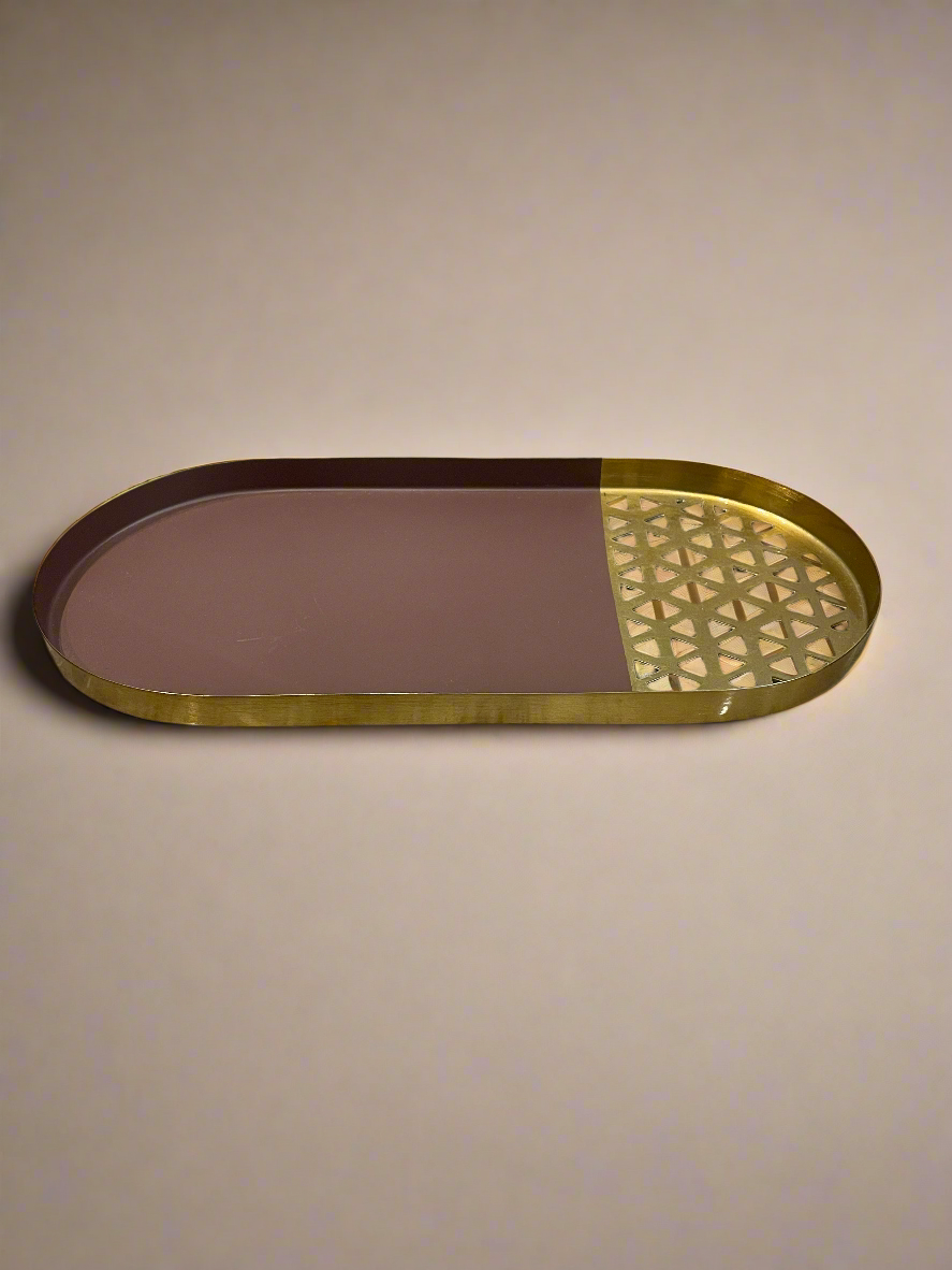 Our Metalluxe Rattan Tray is the epitome of elegance and versatility. Crafted from sturdy metal with intricate rattan-inspired cutouts, this tray seamlessly combines functionality with a touch of luxury. Its sleek design makes it a perfect accent piece for any room in your home.