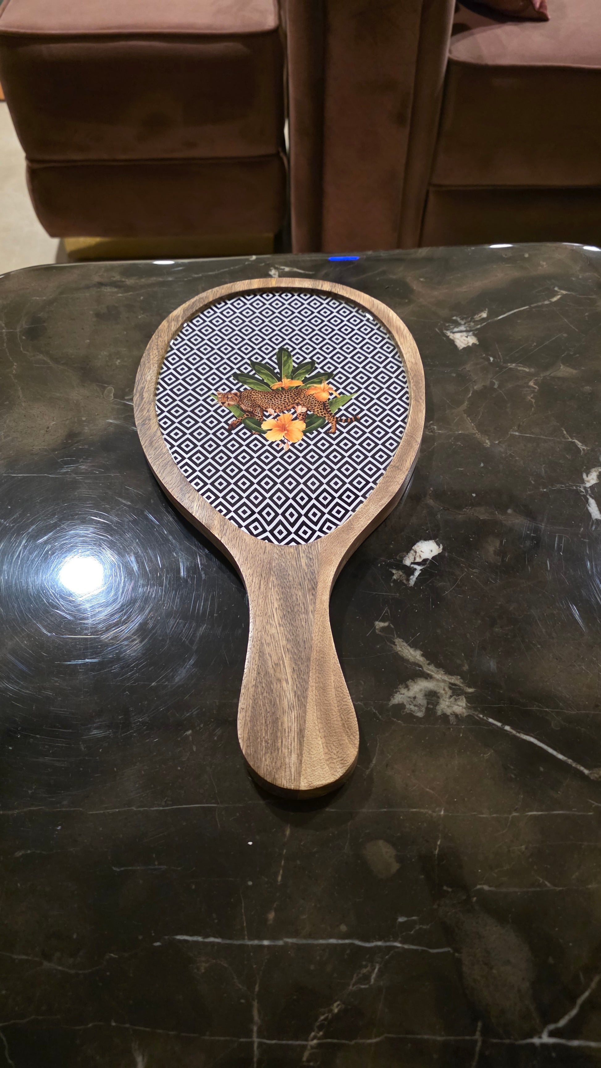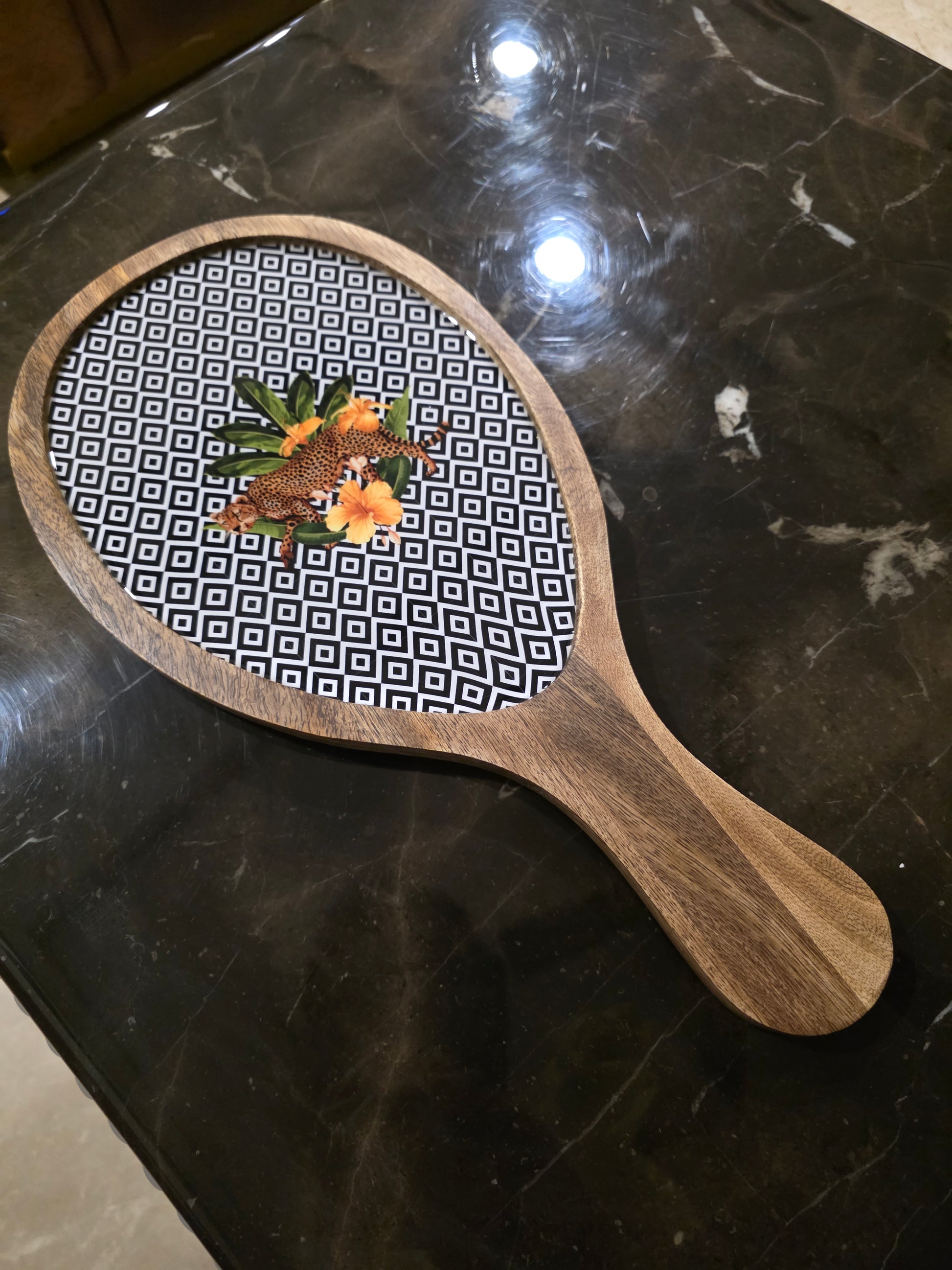 This exquisite oval bat wooden platter tray adorned with our beautiful artwork "Botanical Extravaganza" is the perfect blend of functionality and artistry. Whether serving your favorite dishes or gracing your space as a decorative masterpiece, it adds a touch of timeless beauty to any occasion